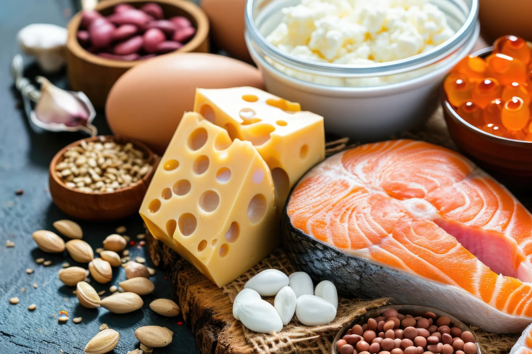 Źródło białka to przede wszystkim owoce morza, mięso i produkty odzwierzęce, jak nabiał czy jaja. Ich zamiennikiem mogą być proteiny z soi i grochu. Pewne ilości białka znajdują się także w fasoli, orzechach i niektórych zbożach. Źródła roślinne są jednak uznawane za niekompletne, ponieważ nie znajduje się w nich pełen komplet aminokwasów. Jeśli jednak jesteś na diecie wegańskiej lub wegetariańskiej, nadal możesz zapewnić sobie odpowiednią podaż aminokwasów, stosując różnorodne białka roślinne (5).